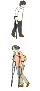 杖歩行 | ![]() □松葉杖(両側・片側) □ロフストランド杖 □T字杖 □多点杖 ※杖を使用する場合は、できるだけ荷物はリュック等を使用して手は杖以外のものは持たない方が良いでしょう。 |