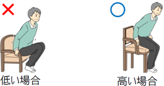 - 椅子の高さはやや高めにしておいた方が立ち上がりやすいです。